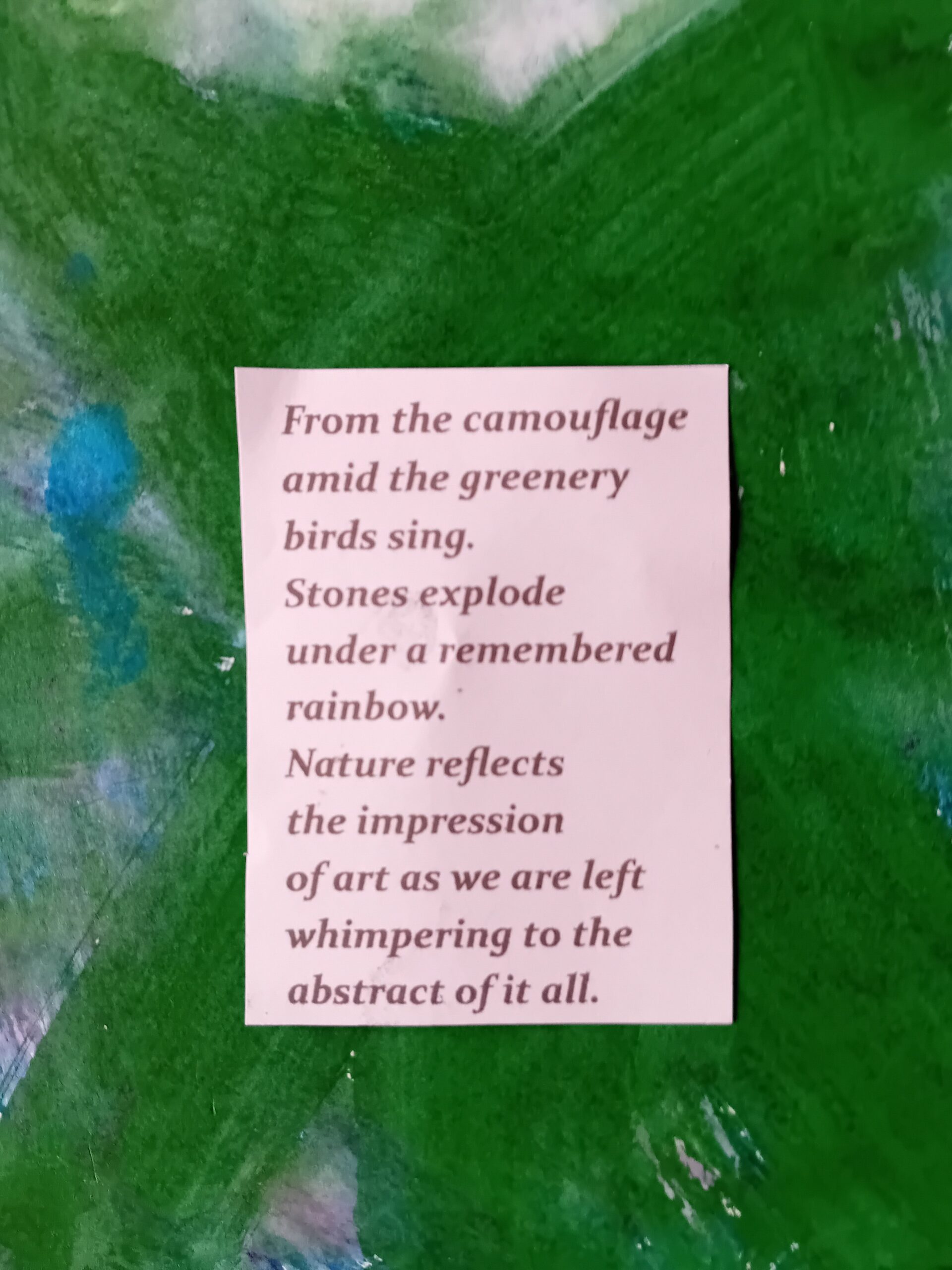Eight monthly Window Art Exhibitions including Visuals and Collage Works. Pottery by Marina